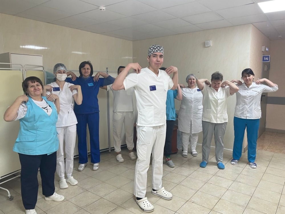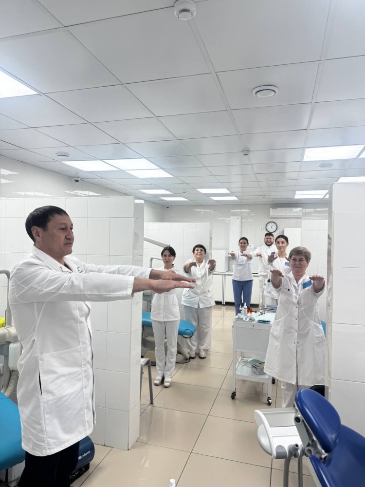 В рамках республиканского проекта «Зарядись!», направленного на укрепление здоровья медицинских работников, в нашей поликлинике внедрена практика регулярной производственной гимнастики.