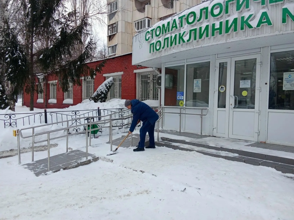 Сегодня на территории нашей поликлиники проведены работы по уборке снега и наледи
