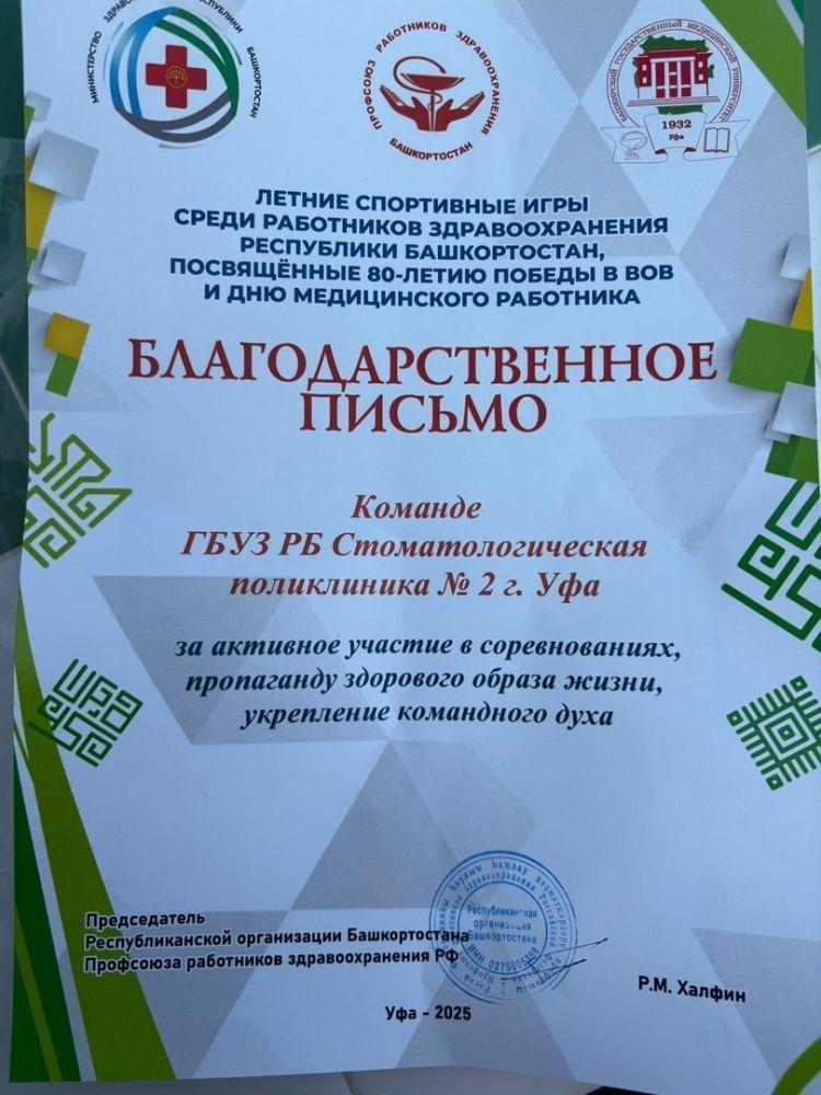 Честь нашей поликлиники защищала команда из 5 опытных кроссменов. Группа поддержки, состоящая из врачей-терапевтов и зубных техников, также прибыли на стадион им. Риммы Баталовой, наряду с другими медицинскими организациями Республики Башкортостан. Наша команда не пропускает ни одного крупного спортивного мероприятия, анонсированного Профсоюзной организацией РБ совместно с Министерством здравоохранения и БГМУ! Всем участникам и всем причастным к этому спортивному празднику огромная благодарность от Профкома и администрации! А наш капитан Тайсин Азат Гарифович получил приз зрительских симпатий!!! Это впервые,такой приз никогда не получали наши бегуны за всю историю!!!! Так держать, ребята!
