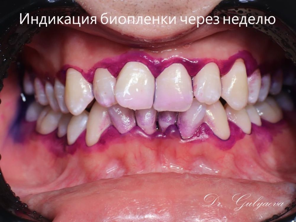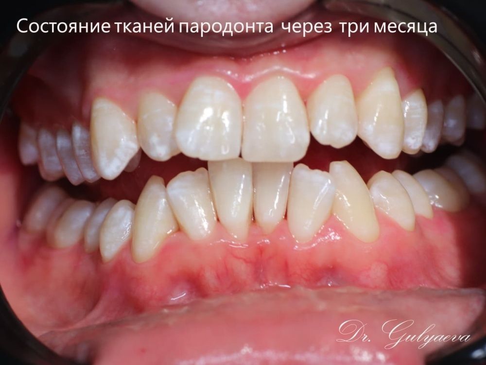 Благодаря этапам индикации и мотивации, а также выполнению пациентом рекомендаций по рациональному уходу за полостью рта, получена положительная динамика уже через неделю и через месяц, отмечается стабильный результат через 3 месяца. Планируется ортодонтическое лечение.